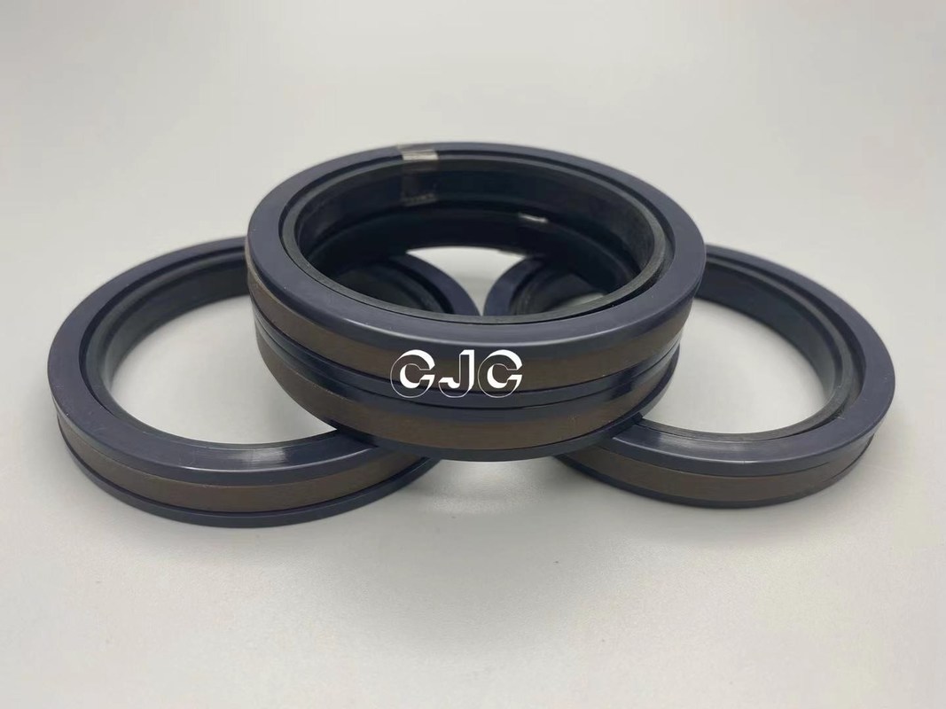 Hydraulische kompakte Bronzerobbe SPGW PTFE ist eine doppelte verantwortliche kompakte Hochleistungsrobbe mit vier Stücken, die aus einem PTFE-Bronze-Profilring bestehen, ein elastomeres Nitritgummi-Vorspannungsdichtelement und zwei thermoplastische Stützringe.